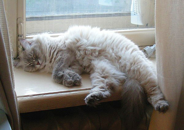 Разведением породистых красавцев никто особо не занимался, поэтому Бася однажды решила эту проблему самостоятельно - просто выскользнув в подъезд в приоткрытую дверь. Где мотала её судьба после этого мы можем только догадываться, но через несколько дней Бася вернулась в родной дом поуспокоившись и с чувством (и видом) выполненного долга. Который, собственно и обернулся ещё через некоторое время коробкой маленьких пушистых котяток.