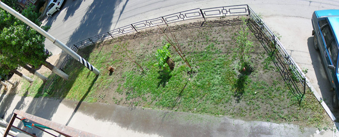 В этом году лето выдалось с большим количеством осадков, что позволило (при удачно закупленных семенах) немного подрастить газон под окнами.