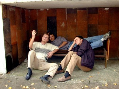 Вечер. Баня. СЛОНы и ЗЕВС укатили домой. По-тихому укатил и FreeMen. Ну СЛОНы-то понятно - у них Дашка, а вот ЗЕВС опять не оправдал "оказанного доверия" - свалил... По ночным коридорам шатаются Никс, Занудов и Героин - расширенное сознание не вмещается в узкие коридорные стены - душа рвётся на волю (вот только выход найти сложно))).