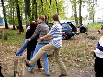 Что-то съели, выпили и... началось! Точнее, продолжилось! )))) Приехали FreeMen и семейство СЛОНа, привезли жрачку и мясо. Тут же развернулись крупномасштабные приготовления шашлыка и организация посиделок на открытом воздухе. Поскольку процесс оприходования вышеназванных канистр продолжался непрерывно, действия сии протекали очень бурно и весело с песнЯми и плясками )))