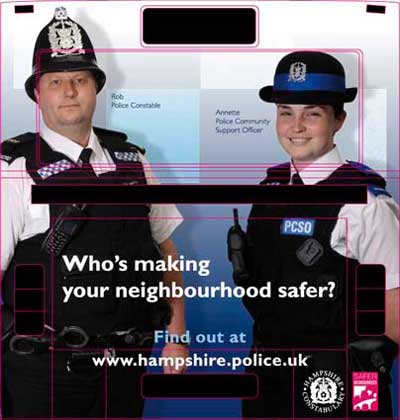 Фотграфии с изображениями полицейских были размещены на автобусах в Хемпшире для улучшения криминогенной ситуации и содействия в решении проблем в обществе.