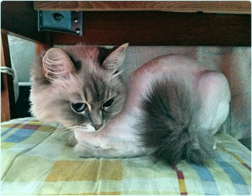 Тут же вспомнил, что хорошо бы постричься, к тому же и повод есть. Постриглись. От блох обработались (у бедной вся шкура в прокусах). Были снабжены мазями и витаминами. Говорят, все будет с Васей хорошо :)