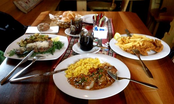 Еще вчера мы договорились, что сегодня "короткий день" - катаем до обеда, обедаем, домой, а потом за сувенирами по магазинам. На выкате с той самой 10-километровой трассы нам попался отличный ресторанчик. Рядом с ним на улице был большой очаг, вокруг которого можно было сидеть на шезлонгах, но парни захотели в тепло и мы втиснулись внутрь. Кормили очень вкусно. Съел крем-суп дня, и блины с джемом и глинтвейном на десерт. Чуть было не подписался на свиную рульку (которая потом досталась чуваку за соседним столом и была прекрасна!). Надеюсь, мы туда еще доедем послезавтра и рулька-таки произойдет.