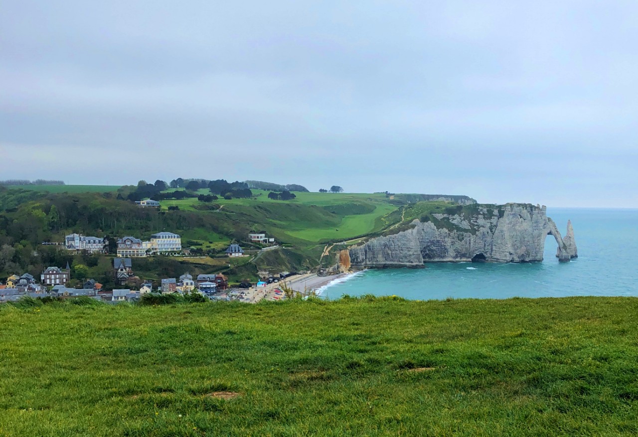 Именно в этот день погода нас подвела: с утра хмурилось, дождило и дул порывистый холодный ветер. Однако, это не помешало нам по дороге заехать в город Кан. Зачем?
