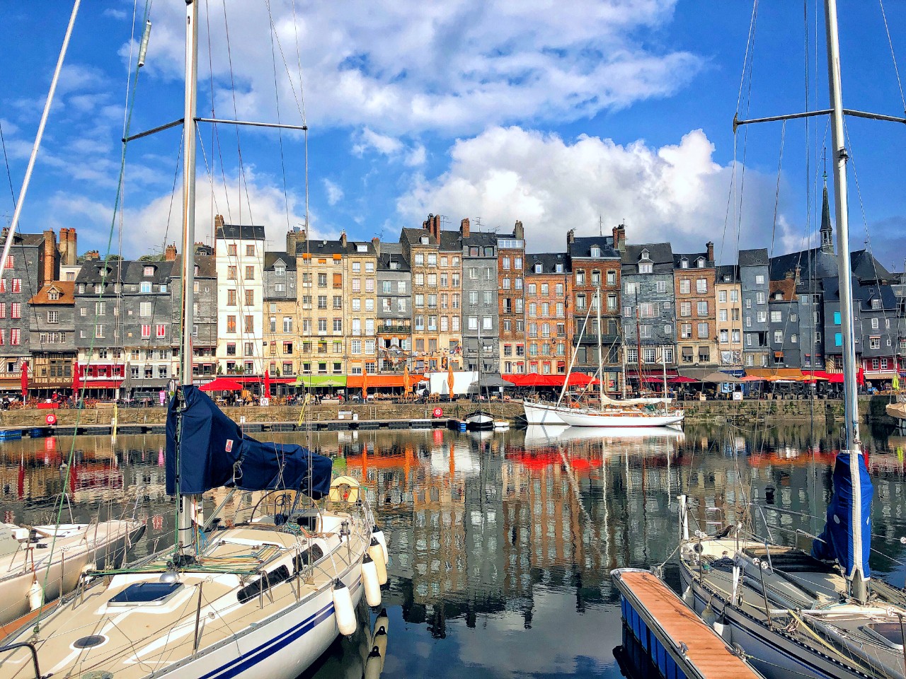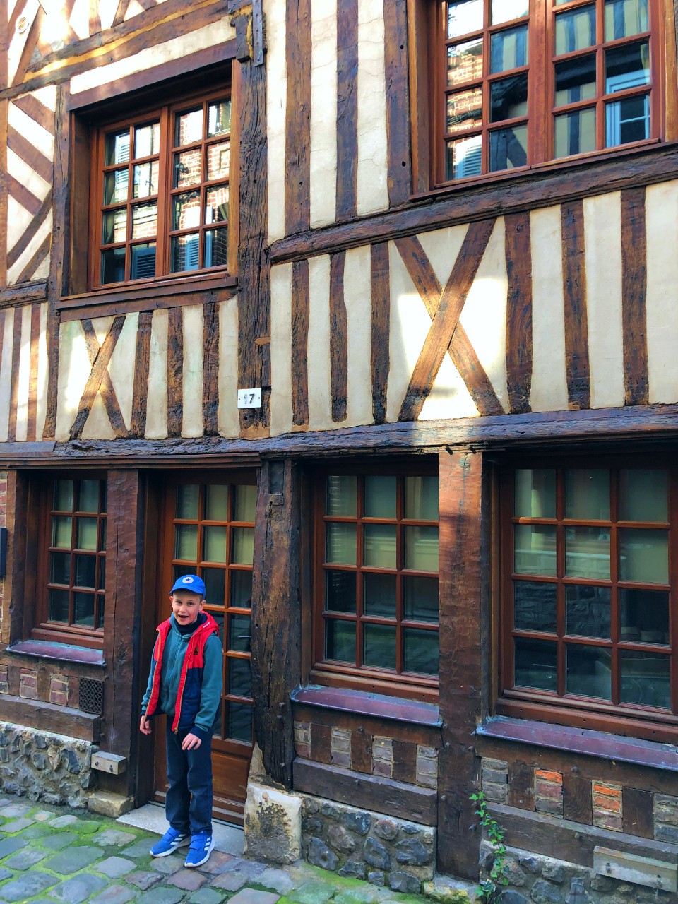 Позавтракав и прибравшись мы снова двинулись в путь. Погода благоволила: светило солнце, машинка бежала бодро, ландшафт за окном постоянно менялся и скоро мы уже крутились по старым узеньким улочкам Онфлера, подыскивая свободное место на парковках.
