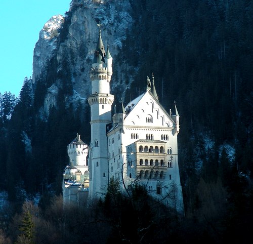 Надо отметить, что поездка получила-таки культурный уклон, т.к. один из дней решено было посвятить осмотру известных Баварских замков. Не взирая на длительные переезды в автобусе, экскурсия очень понравилась. К тому же появилась возможность обозреть из автобуса окрестности, горы сопровождали нас повсюду и погода была солнечная. В программе экскурсии были 2 замка: Hohenschwangau и Neuschwanstein. В первый экскурсия была довольно быстротечная, внутрь замка нас не повели, ограничившись внутренним двором и магазином сувениров: