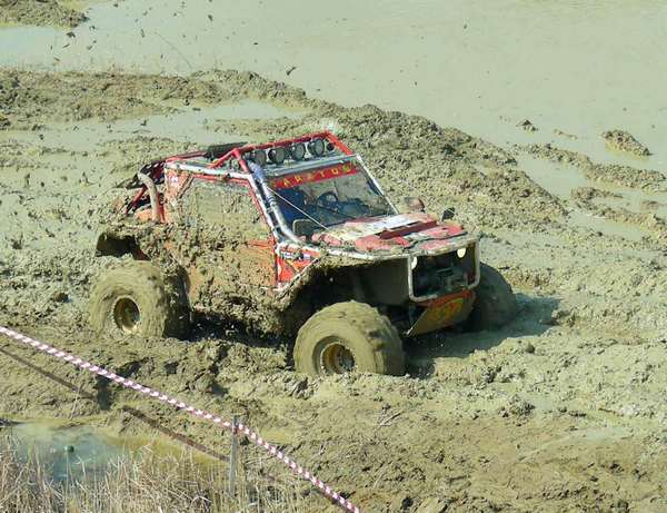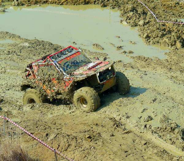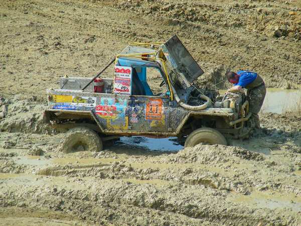 Со старта многие оптимисты свернули прямиком в лужу, где и просидели довольно долго, пытаясь выплыть. Остальные же рванули наездить максимально полных кругов, пока окончательно не размесят грязь. Надо отметить, что действо получилось довольно зрелищным с большим количеством комичных и, порой, драматичных моментов. Экипажи увязали в глубокой жиже, вытягивали себя лебёдками и вытаскивали друзей, ломались, тонули, бились и подталкивали друг друга. Вобщем, было весело и интересно.