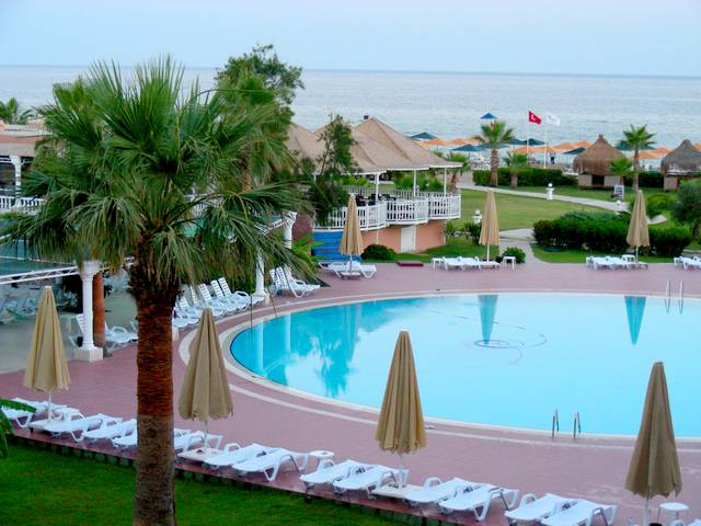 Взвесив романтику Питерских белых ночей в сравнении с поездкой в новую страну (понятно, вобщем, какую), подсчитав бабки и посоветовавшись с нашим любимым тур-оператором Наташей мы решили, что хотим в Турцию на ультра олл. Заранее мы не подсуетились, поэтому за 2 недели до начала отпуска начали рыскать по интернету в поисках удовлетворившего бы нас предложения и куда ещё остались путёвки. Оределяющими критериями были наличие бесплатных теннисных кортов и сауны. Судя по тому, что вы читаете этот пост, наши поиски увенчались успехом. Собрали пожитки, прыгнули в поезд и уже вечером следующего дня были в Kaya Side 5*. Успели аккурат к окончанию ужина ;)