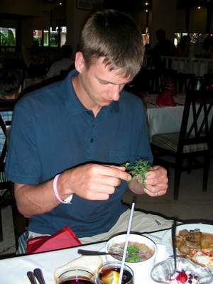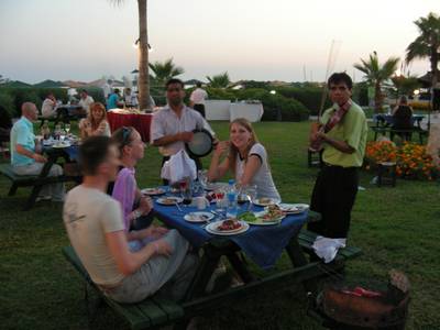 Мы отметили "экватор", потом - народные гуляния по поводу побед сборных России и Турции в играх "Евро 2008" и вот уже остался последний день отдыха. Было заметно, что уезжать не хочется ни кому - народ заметно погрустнел. В последний вечер мы посетили одни из трёх "a-la carte" ресторанов - "барбекю". У каждого стола стояла жаровня с углями и посетители самостоятельно обжаривали кусочки мяса, колбасы и овощей. Играла живая музыка, официанты разносили еду и напитки. Получилось очень уютно, да и куриные окорочка были отменными!
