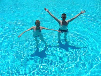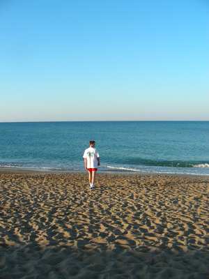 Каждое утро мы начинали с подъёма в 5:30 и полутора часов на теннисном корте до наступления жары. Пушки тоже привезли ракетки и довольно быстро втянулись в наши утренние экзерсисы. Привезённые ракетки для бадминтона и настольного тенниса себя не оправдали - стол был убит до непотребности, а бадминтонить было просто лень. В 10:30 я так же выдвигался на пляжный волейбол. Обнаружил, что в среде отдыхающих термин "бич воллей" практически однозначно трактуется как "беспредел полный". Т.е. заваливание на сетку и игроков соседней команды, задержки мяча и т.д. - это просто невинные шалости. Но в целом было довольно весело.