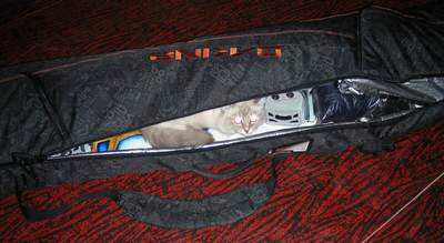 Собирался, как всегда, в вечер перед отъездом. Нелёгкая задача заключалась в упаковке всего необходимого для поездки в наиболее компактном виде. На все 100% оправдал себя подаренный чехол для борда с колёсиками и отделениями для ботинок. Внутрь был аккуратно уложен борд со сложенными креплениями, ботинки (внутрь которых были помещены всякие хрупкие мелочи), штаны, термобельё и остальное снаряжение. Багаж не должен был превышать 20 килограмм. Пару из них с удовольствием добавила Василиса: