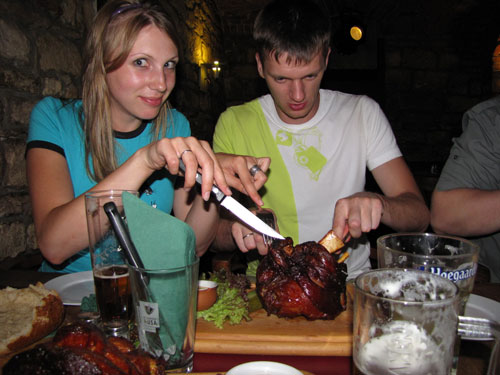 Быть в Праге и не попробовать настоящего "Вепрева колена" - преступление. Оно было прекрасно. Ароматное, сочное, мягкое мясо на косточке. С хрустящей корочкой, горчицей и хреном под прохладное пиво... (Пишу, а слёзы капают...)