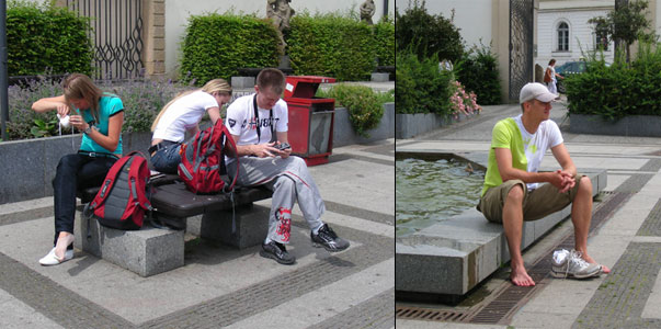 Итак, предыдущее повествование закончилось тем, что к обеду первого Пражского дня мы пришли в некий чудесный парк с золотыми (и покрупнее) рыбками и павлинами. К слову, парк называется Вальштейнским садом. В одном из следующих постов обязательно будет небольшая панорама этого чудесного места. Когда мы подошли к большому бассейну с фонтаном, Паша заметно оживился и стал сокрушаться об отсутствии под рукой рыболовных снастей - вода буквально бурлила. Рыбы было много и рыба была в курсе, что находится под охраной государства - толпой бросалась на любой всплеск.