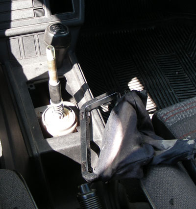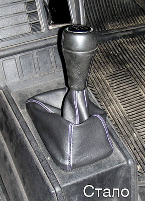 Такая же ситуация была и с "юбкой" на рычаге переключения передач. Когда-то она была аккуратно сшита из винила и выглядела, наверное, очень круто. Однако, со временем, под воздействием солнца и влаги виниловый слой высох и облетел, оставив только подкладку.