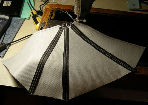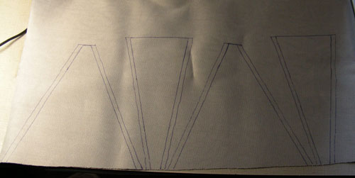 Затем швы прострачиваются. Сначала по линии соединения деталей, а затем ещё по два раза для фиксации отворотов с внутренней стороны.