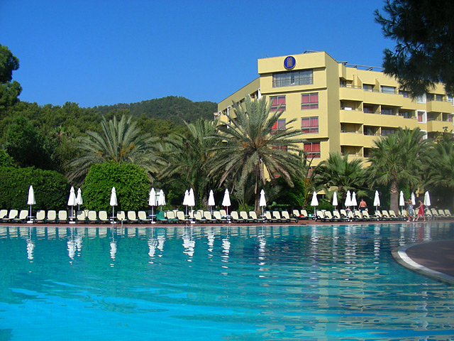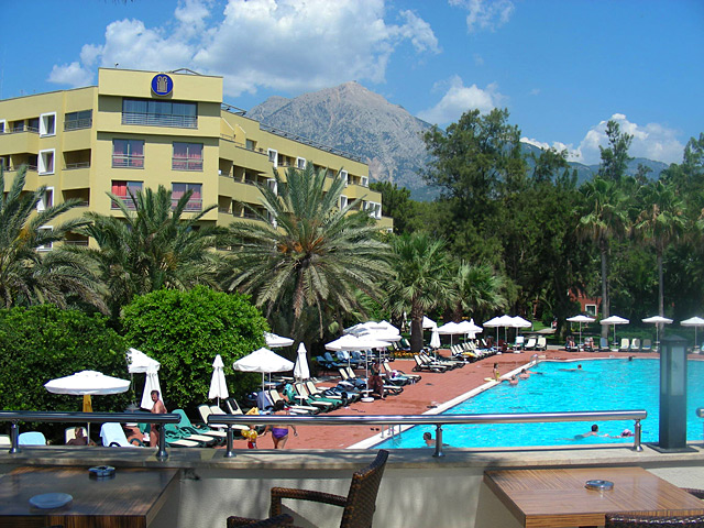 Corinthia Club Hotel Tekirova 5* расположен недалеко от Кемера, в 60 километрах от Анталии, куда и прилетел наш самолёт. Условиями выбора отеля были наличие теннисных кортов, первая линия (собственный пляж) и UAI.