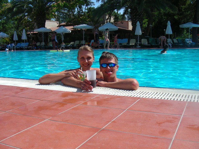 Основное время нашего отдыха проходило на лежаках около бассейна или на побережье. Народу было очень много, много отдыхающих с детьми.