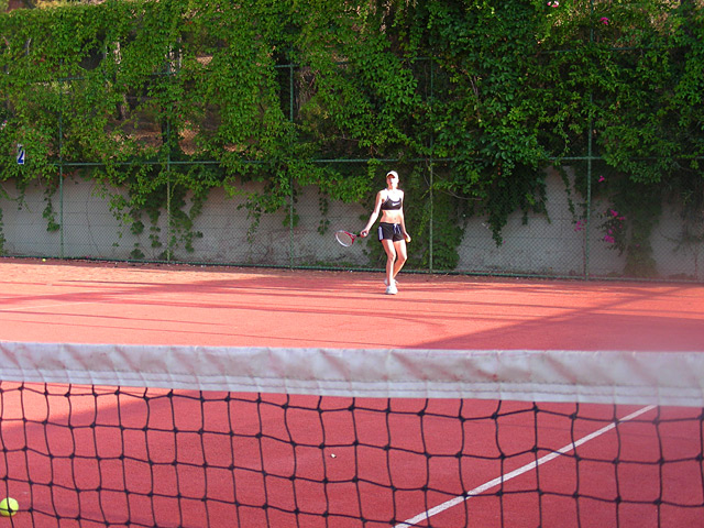 Приехав в отель (уже рассвело и спать не хотелось), мы сдали вещи на хранение. По правилам отеля, номера в день выписки освобождаются до 12 часов дня, а поскольку свободных номеров не оказалось, нам пришлось ждать, пока отъезжающие в тот день освободят номера и там проведут уборку. Т.е. до 14:00 мы были предоставлены сами себе. Решили до завтрака опробовать теннисные корты, переоделись и пару часов с упоением помахали ракетками.