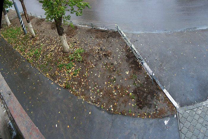 Из предыстории: на фото - вид с нашего балкона (из окон виден тот же, примерно, участок). Обкурки-мажоры и мамаши с детьми для ближайшего детского сада повадились парковать свои пепелацы вот прямо на самом что ни на есть газоне. Трава не растет, деревья сохнут, летом пылища от открытой укатанной земли - а ни у кого ни тени сомнения. "Ну а чо, @#$, раз парковаться негде?!", мол?!