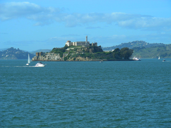 В тот день мы прошлись по набережной до 39 пирса - злачное туристическое место со множеством сувенирных лавок и ресторанчиков, зашли в культовый ресторан отведать крабового мяса с пивом, а потом, отстояв часовую очередь и промерзнув до дрожи, проехались на культовом трамвайчике, приводимом в движение троссом, упрятанным в мостовую. Самое прикольное, что в нем можно ехать стоя на подножке (почитайте статью на википедии). Ну и конечно же, наблюдали знаменитый Алькатраз: