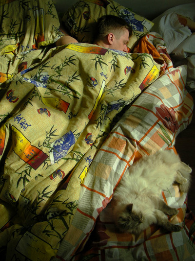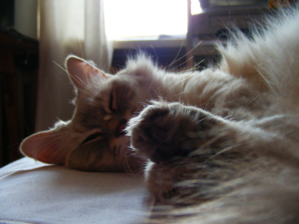 Потрясающе, как становится на душе хорошо и поднимается настроение, когда смотришь на кайфующего кота. А они, прохвосты, умеют кайфовать, просто развалившись на пыльном полу в лучах тёплого утреннего солнца. Ну или просто растянувшись и повиснув уцепившись когтями за хозяйскую тельняшку )