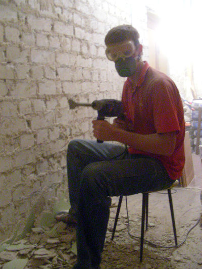 Друг поделился перфоратором - за полчаса был проделан двухдневный объем работ. Мелкой пылью забито, без преувеличения, все в квартире. Даже в самые мелкие щелки затянуло. Заодно проштробил каналы под проводку. Перфоратор - незаменимая при ремонте вещь (мне семья потом подарила на ДР :))