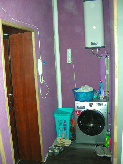 Стиральная машинка появилась настолько рано, насколько это было возможно. Мы с Танькой долго ругались при выборе обоев, но в итоге выбором остались довольны.