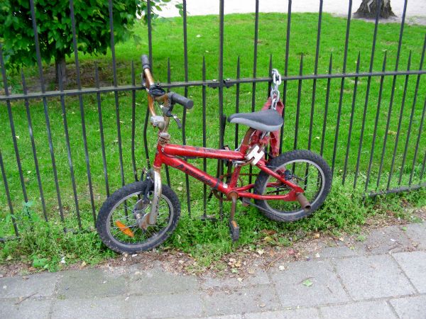 Совсем старые велы же часто заканчивают свой век, будучи прикованными к какой-нибудь парковой ограде или мосту (или вообще - в одном из городских каналов). Городоские службы в центральных районах пытаются отслеживать брошенные велосипеды наклеивая на них стикеры различных цветов и последующей эвакуацией.