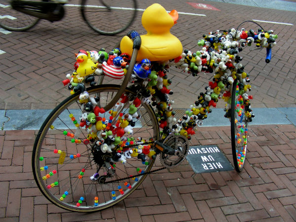 Велосипед здесь настолько плотно вошел в повседневную действительность, что, по-рассказам, тут даже сдаются специальные экзамены и выдаются права на управление велосипедом. Естесственно, что при такой концентрации велосипедов на улицах нередки случаи угонов и краж. Посему, амстердамцы особо не парятся о внешнем виде и "навороченности" своего велика - чем более дряхлым и пошарпанным он выглядит, тем меньше вероятность с ним расстаться досрочно и не по собственной воле.