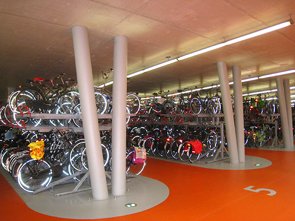 Там же мы впервые увидели подземный вело-паркинг. Впечатлила, во-первых, чистота и опрятность помещения, во-вторых, конечно же, масштабы.
