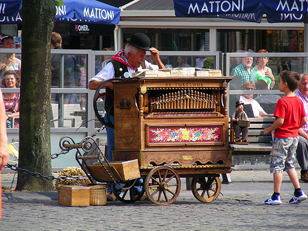 Еще немного гуляем по центру города. Толпы туристов слоняются и катаются в каретах на лошадках, магазины известных брендов. Достаточно оживленный, современный город. На центральной площади старый шарманщик с аутентичной музыкальной установкой и фонтан без чаши, бьющий прямо на булыжную мостовую.