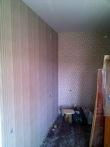 Стены и потолок готовы - время клеить обои. В эту комнату мы подобрали два вида обоев - по две стены на каждый вид. Получилось очень удачно.