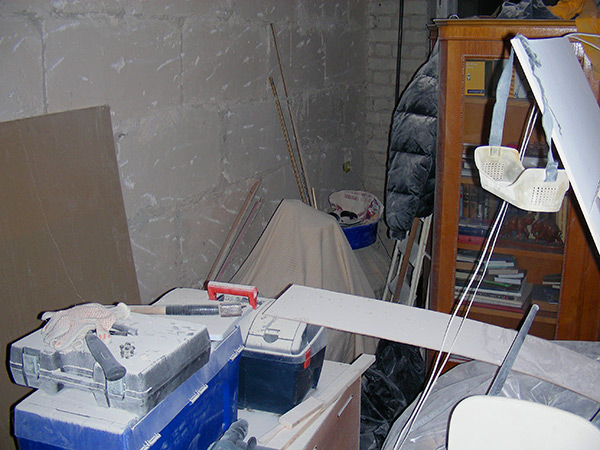 Всяческие более мелкие предметы были распиханы по кладовке и дальней спальне. Все в комнате укрыто полиэтиленом.