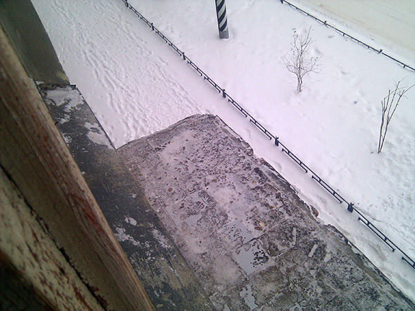 Приехали бравые хлопцы и отпилили старые перила на балконе. Вид, конечно, психоделический получился :)