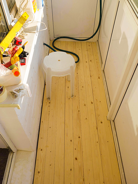 Доски пола были буквально на пару сантиметров длиннее, чем нужно, но тут на выручку пришел верный лобзик. Им же была продольно выпилена и последняя доска.