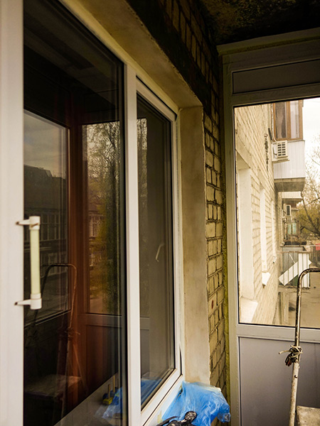 С момента окончания ремонтных работ ремонт в гостиной балкон, хоть и "оделся" в пластик и стеклопакеты, внутри так оставался пространством довольно запыленным, с потрескавшейся, такой дефицитной в свое время чехословацкой плиткой и кирпичной стеной. Ещё тогда, прокладывая новую проводку, я вывел сюда провод для розеточки, но облагородить балконное пространство так и не доходили руки.