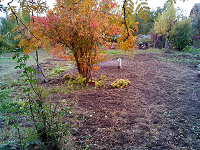 Ну а на прошлых выходных друг Серёга вспахал добрую часть участка мотокультиватором, за что ему огромное спасибо. Осталось выбраться еще разок по теплу, разровнять землю и засеять газонной травы на весну.