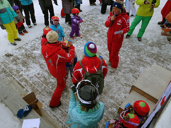 Вообще отношение к детям в Европе заметно более внимательное и участливое, чем я замечал у нас. По окончании обучения каждому выдается грамота-сертификат на память, а лучших в каждой группе в присутствии всего курса и родителей награждают фирменной Мурмли-кашей (Мурмли - это у них символ такой, тирольский бобёр). С детками до обеда занимаются, потом кормят, потом еще немного занимаются и передают родителям. Тех, кто постарше и более самостоятелен, можно отдать под полную опеку тренеру, а самому уехать кататься. Самых маленьких, естесственно, нужно сопровождать.
