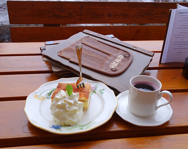 Поскольку неотъемлемой частью любой каталки является необходимость пожрать на склоне в обед, да желательно на открытой веранде под солнышком, да желательно чтоб панораму обозревать и глинтвейн горячий :)