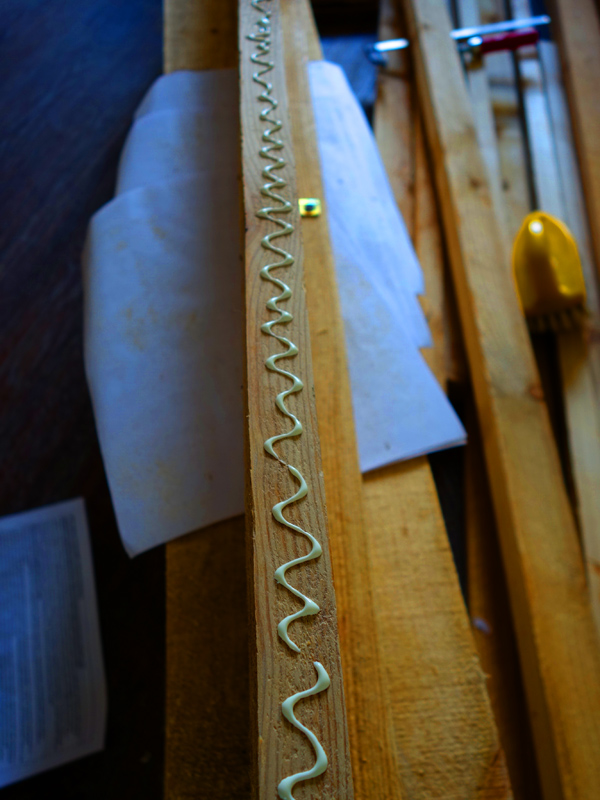 Боковины сначала приклеиваются к основанию, а после - фиксируются металлическими уголками изнутри.