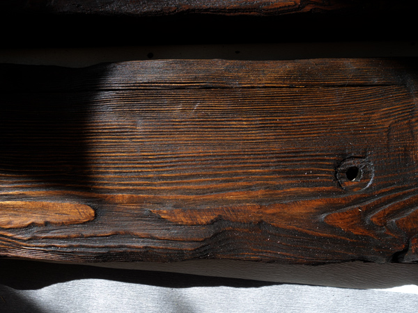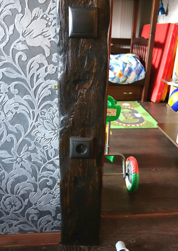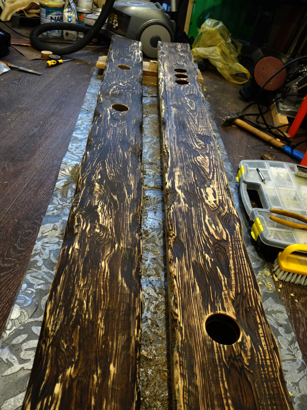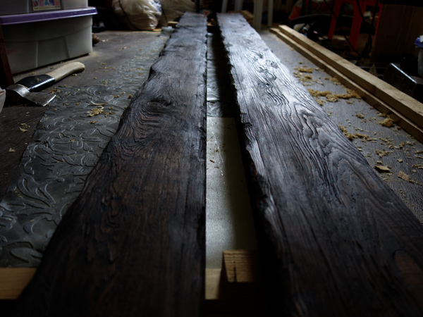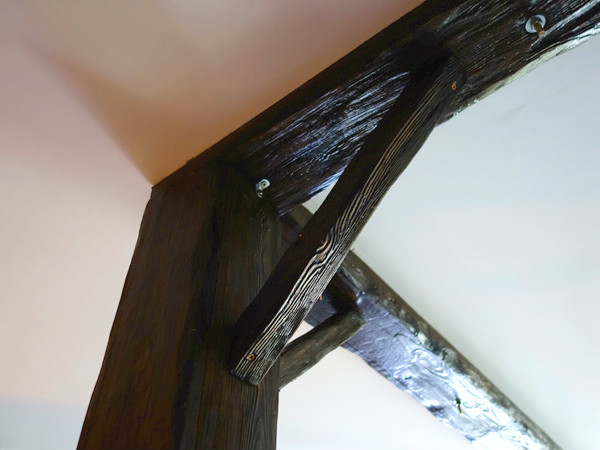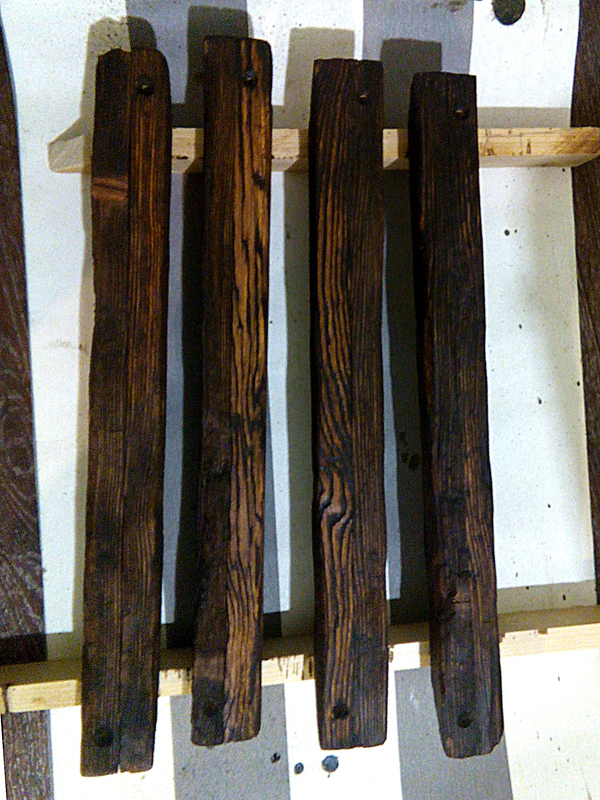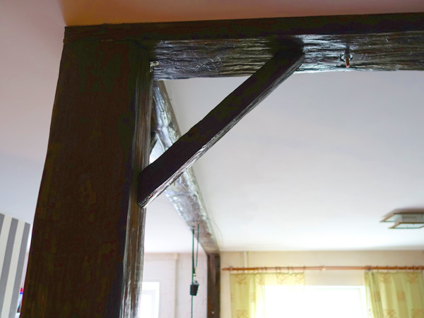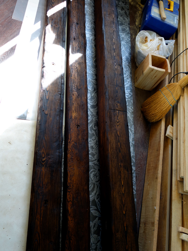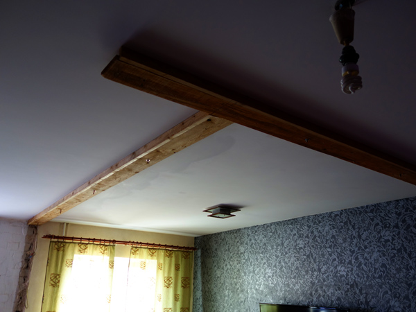 По задумке балки должны быть искусственно состарены, колерованы и покрыты лаком.