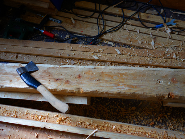 Топором хорошо так же сравнять стыки с боковинами.