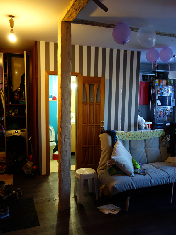 С самой длинной 4-метровой балкой пришлось возиться дольше остальных. Мало того, что она весила килограмм 30, так и на "примерку" её приходилось таскать с особой осторожностью, чтобы не покрушить и не поцарапать всё вокруг.