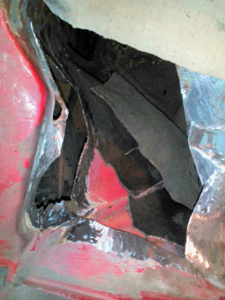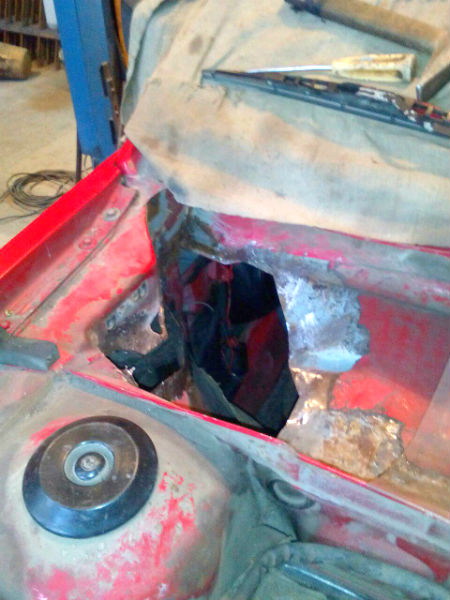 Вырезать и подваривать... Проблема вот только, что изнутри уже не подлезешь. Хотели крыло снять, да там всё намертво за годы прикипело - не повредив не снять...