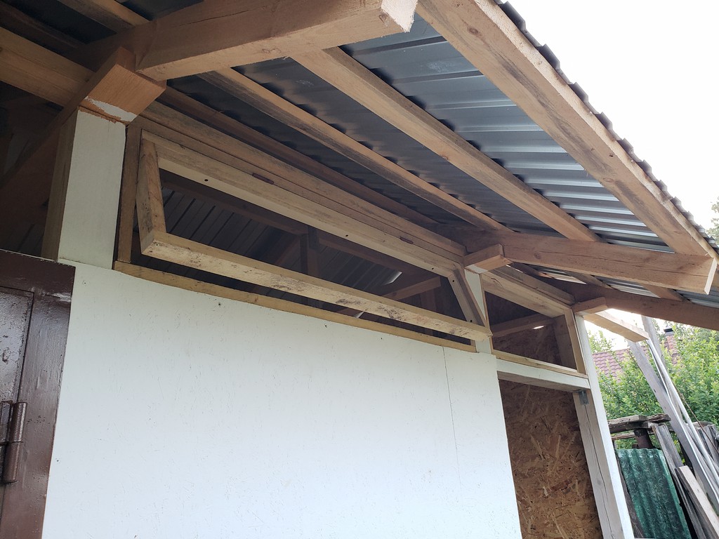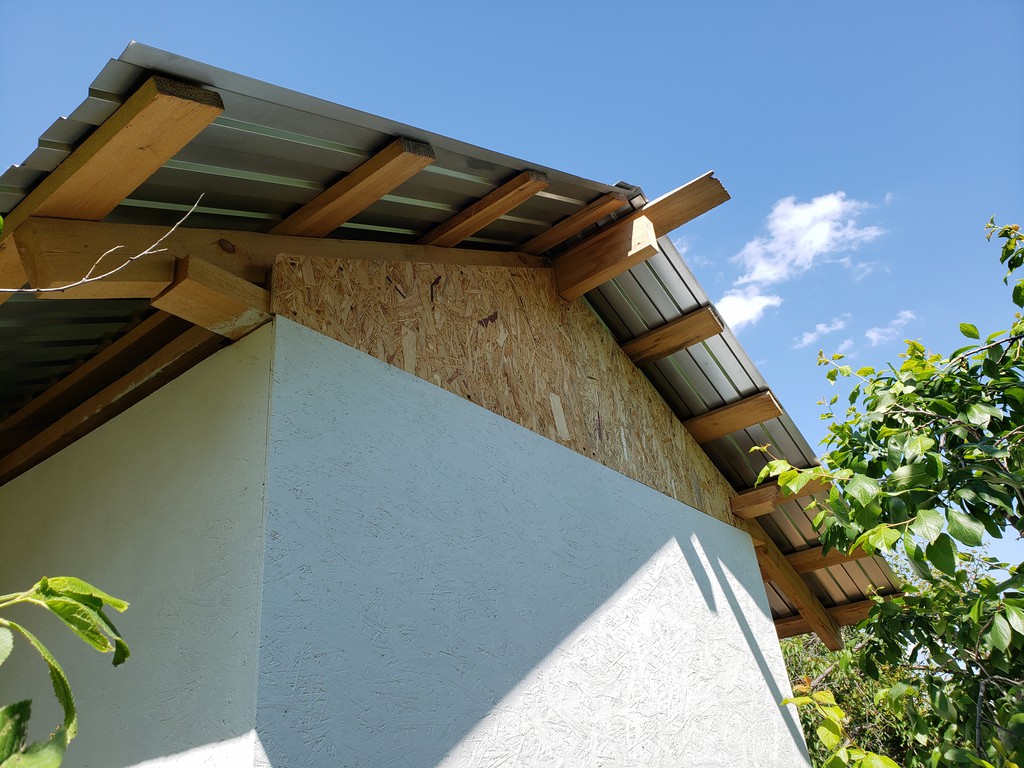 Худо-бедно, уже в последний день обшивка была завершена. Полости и отверстия под крышей постараюсь на более позднем этапе герметизировать монтажной пеной.