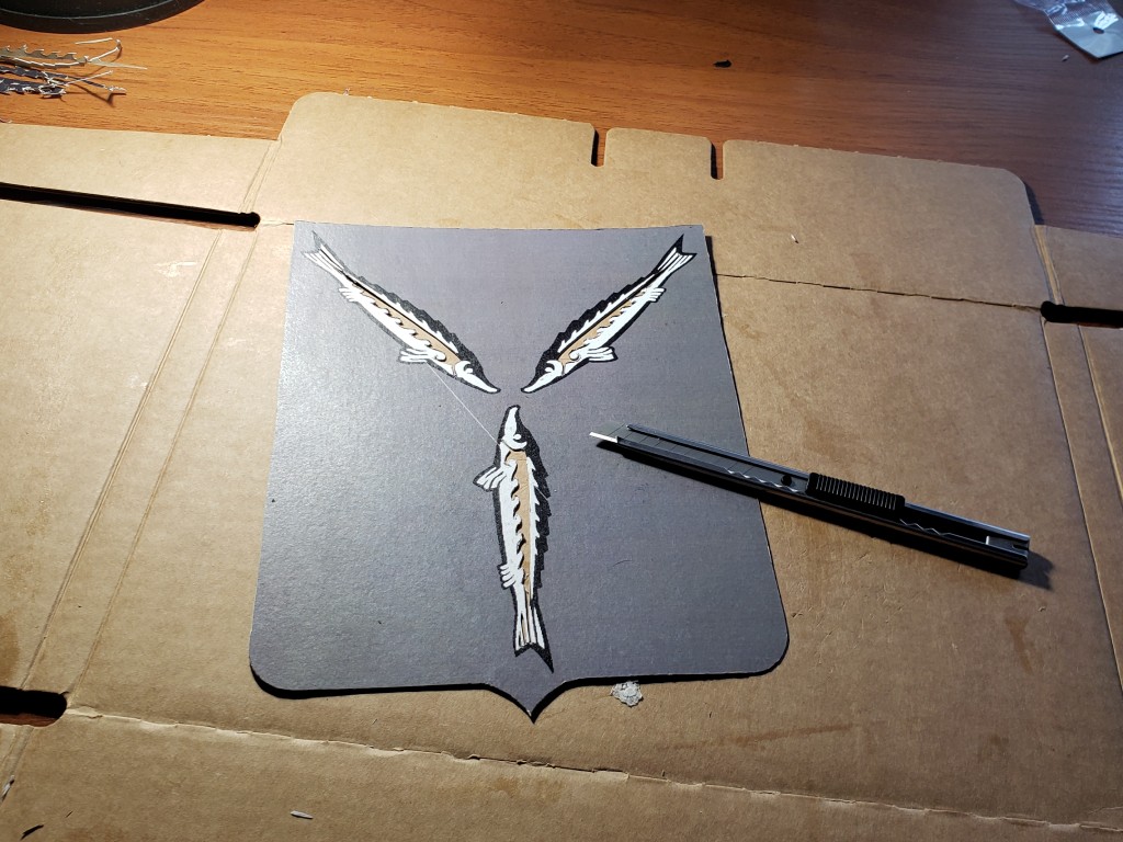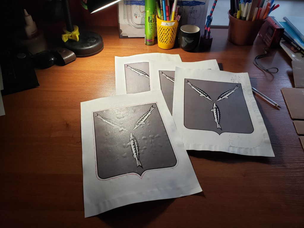 В офисе распечатал несколько копий на А4 и дома приклеил к картонному основанию, чтобы защитить трафарет от деформаций при набивке. Отдельные трафареты были вырезаны для: